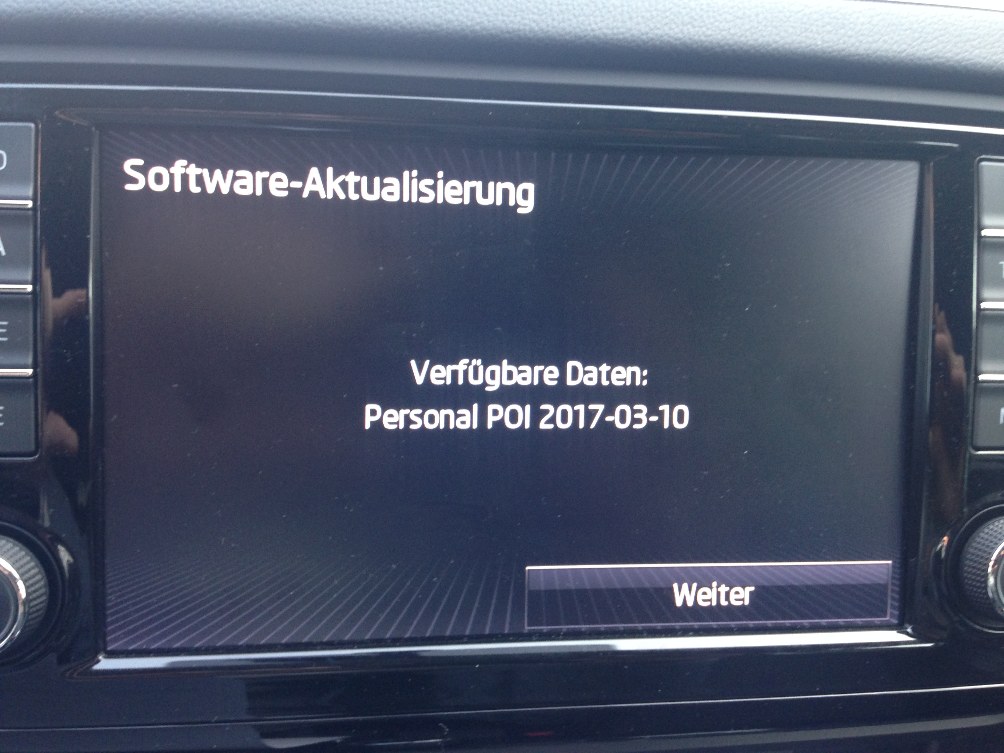 • Nun wird auf der SD-Karte nach einem Update gesucht. Dabei ist nicht ein Update der Navi-Software gemeint, sondern der POIs. Wenn alles klappt, sollte jetzt ein „Verfügbare Daten: Personal POI JJJJ-MM-TT“ erscheinen.