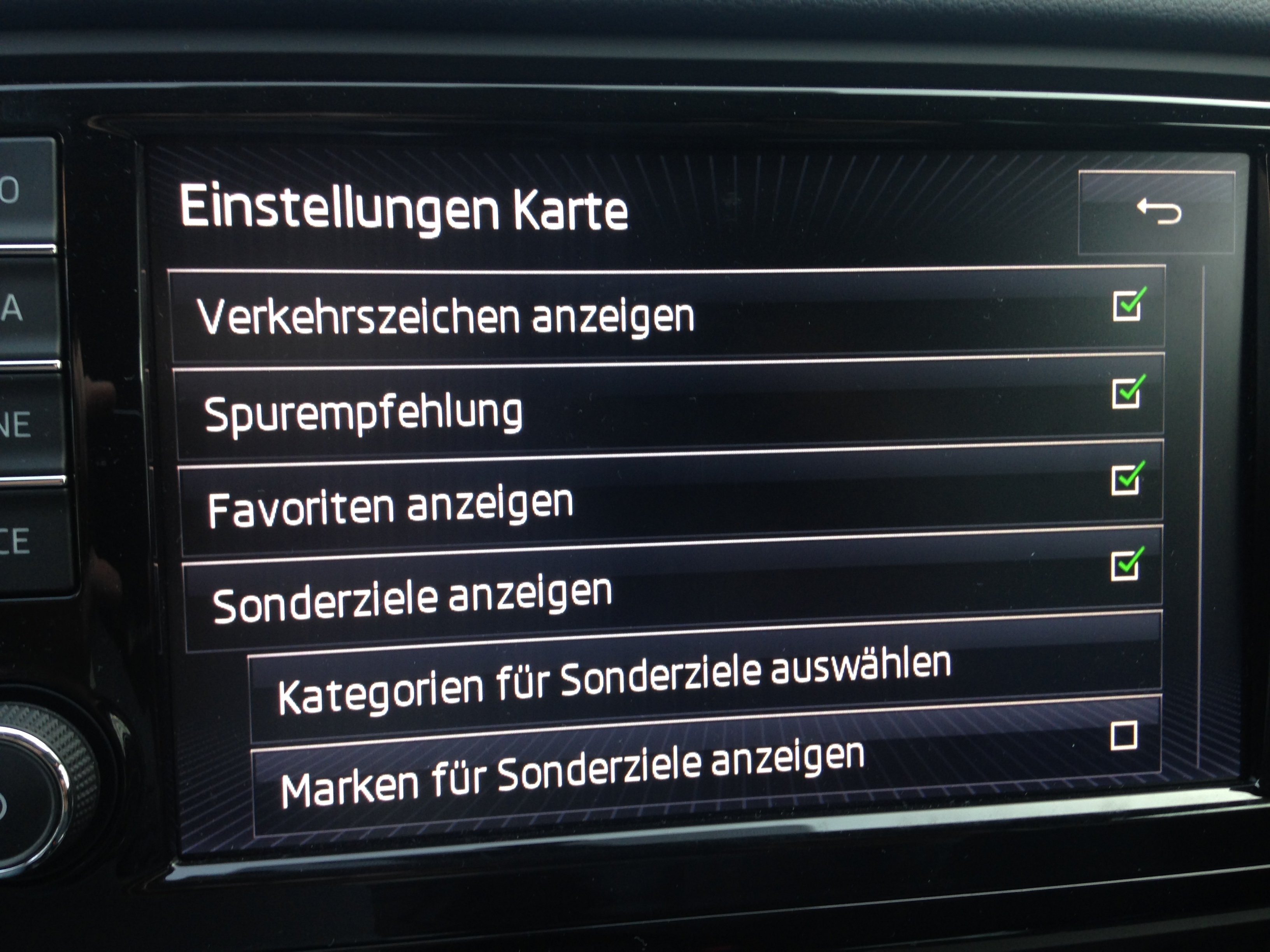 • Nun in die Einstellungen für Karten wechseln und die „Kategorien für Sonderziele auswählen“